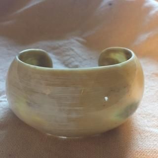 丸みのある可愛らしい表情のバングルです。控え目な存在感♪透け感があります。